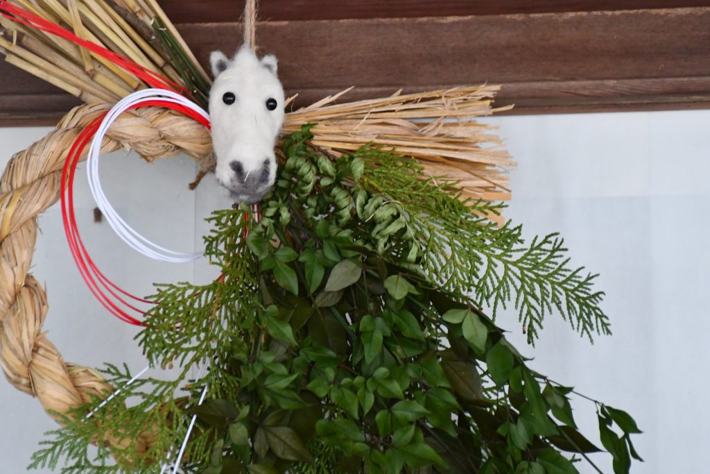 動物用の敷き藁を少し拝借し、縄を綯い、